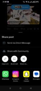- After tapping the share, tap on the Copy Link option.